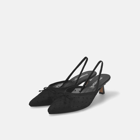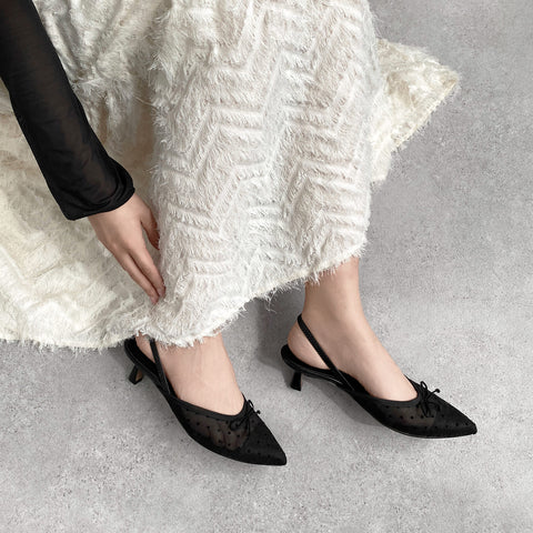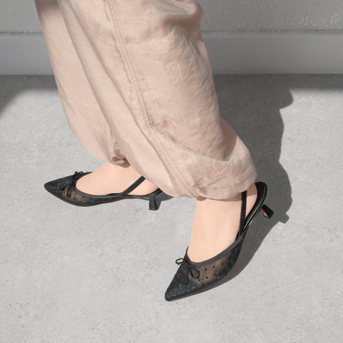 15% OFF: 2024SS: Tulle Design Back Strap Pumps (m45005) Black TU