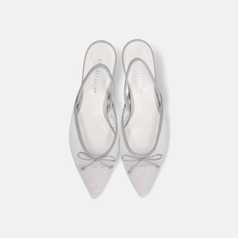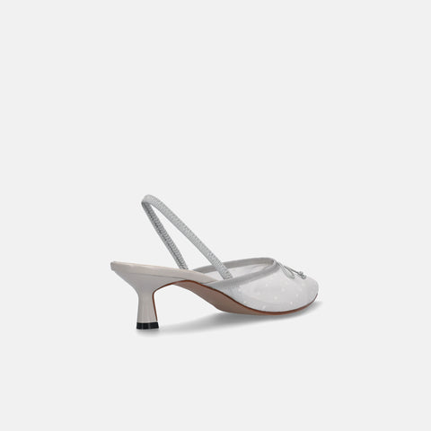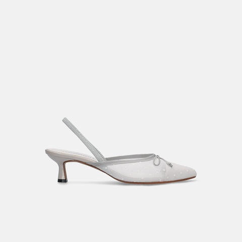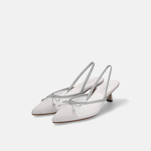 15% OFF: 2024SS: Tulle design back strap pumps (m45005) White gray TU