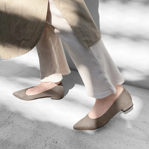 20%OFF:2025AW:iCoN COLORS:ポインテッドトゥ スエード フラットシューズ(C20142)グレージュS