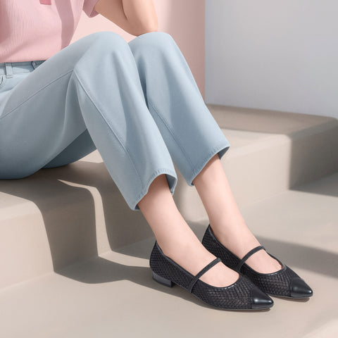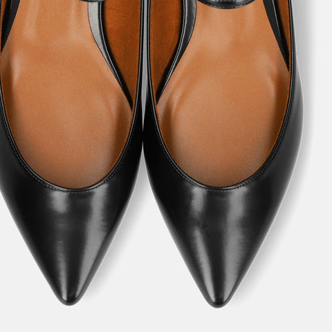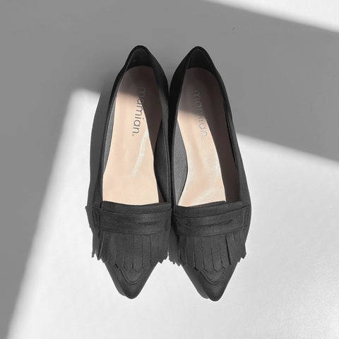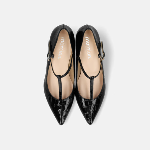 2025AW:スクエアトゥ メリージェーン フラット(m10310)ブラックサテン