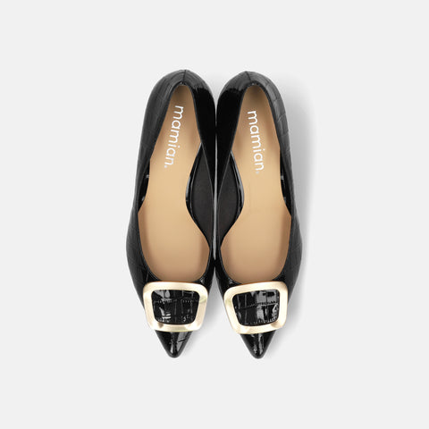 2025AW:スクエアトゥ メリージェーン フラット(m10310)ブラックサテン