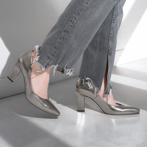 The 8cm plate heel adds an accent to the simple design, and has an unusual silhouette with sharply shaped sides that look like a stiletto heel when viewed from behind. A pair of shoes that combines beauty and stability.